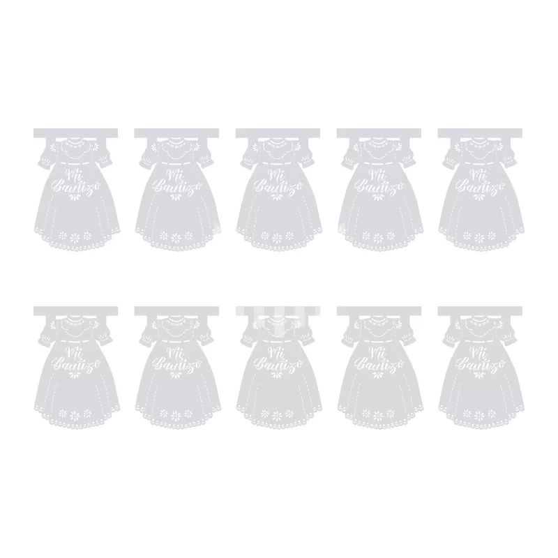 Una decoración celestial para tu evento sagrado, adquiere nuestra Enramada de Papel 1/4 Ropón Mi Bautizo/ Blanco.