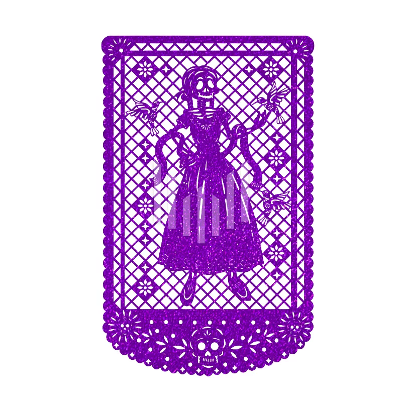 Este frontal metálico vertical en color morado muestra a La Poblanita, una figura llena de folclor y tradición que representa la esencia de la mujer mexicana. Con medidas de 40 x 65 cm, esta pieza es ideal para darle un toque auténtico y colorido a tu altar o decoración del Día de Muertos.